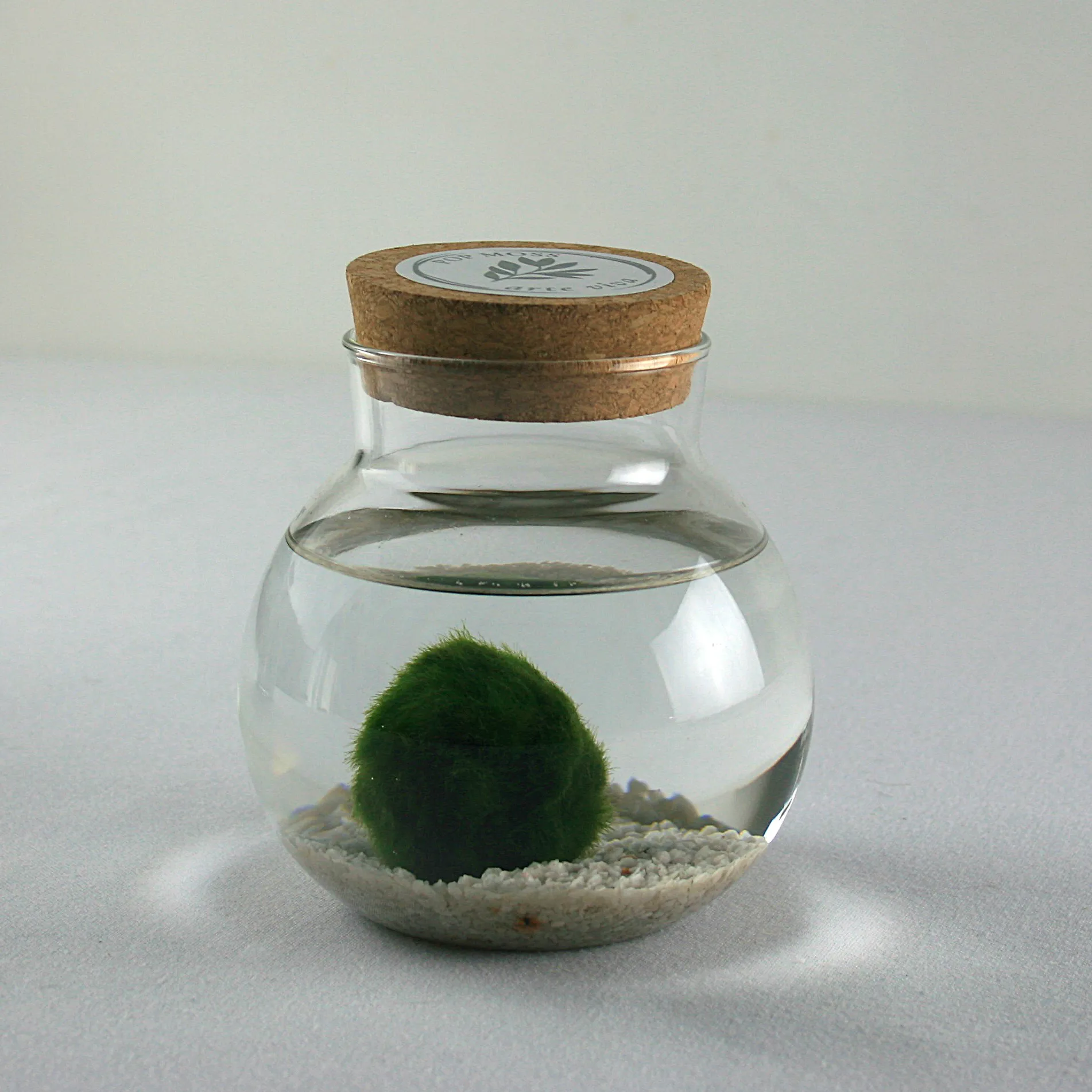 Um marimo natural com cerca de 2 a 3 cm, apresentado num boião de vidro de formato redondo, criando uma composição simples, equilibrada e elegante. A areia natural no fundo realça o verde intenso do marimo, proporcionando um contraste suave e harmonioso. Este pequeno organismo vivo é conhecido pela sua resistência e baixa manutenção, sendo ideal para quem procura uma decoração viva e natural. Uma peça minimalista e cheia de vida, perfeita para oferecer ou para trazer a natureza para dentro de casa. O que inclui: - Frasco de vidro com tampa de cortiça - 1 marimo - Areia clara Os marimos são organismos vivos, resistentes e de baixa manutenção. Apenas precisam de: - Luz indireta - Trocar a água semanalmente - Ambiente fresco Dimensões do Marimo: +/- 2,5 cm (diâmetro) Dimensões do frasco: 11 cm (altura) x 10 cm (diâmetro)